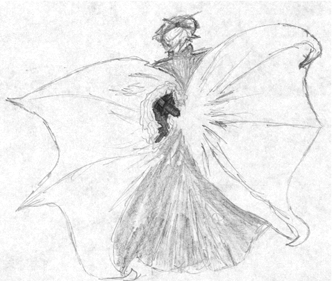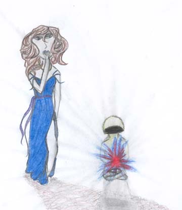The woman is caught by surprise as the sorcerer does his thing a little ways in front of her.