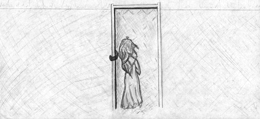 A temple I drew a good while back. Religious symbols on a tapestry thru the doors are quite visible. One door has spirals or portals on them.